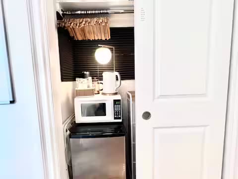 Other common areas include the kitchen, living room, and laundry area. The fire escape is technically accessible by all but only through another bedroom, so we ask that you use it only in case of emergency (and in general, please respect the privacy of other others’ bedrooms). All kitchen appliances, silverware, dinnerware, glassware, spices/seasonings/condiments, coffee, tea, and milk are available for your use, as are laundry supplies and all amenities that are on display (or described in our amenities list).