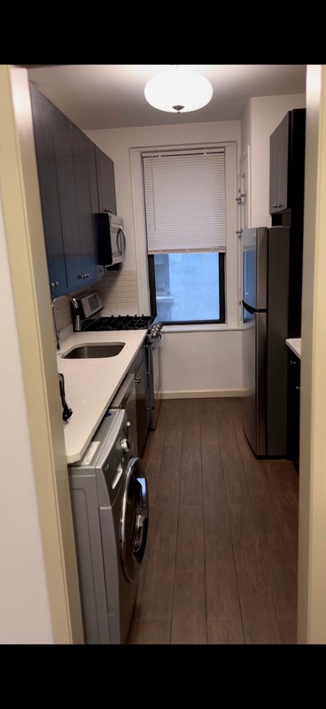Room in a spacious 2br/1ba apartment with a large kitchen, washer/dryer unit, and dishwasher.