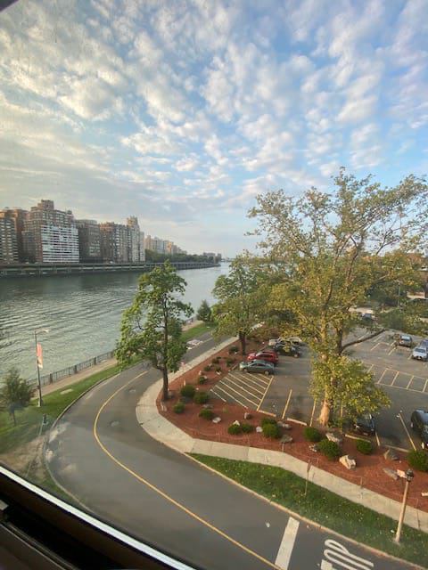 Roosevelt Island is a lovely and peaceful island right next to Manhattan with the "F" train, the aerial Tramway and the Ferry! On the island, you have grocery stores, Food Town, Starbucks, Duane Reade, parks, basketball & soccer fields, table tennis, Cornell University, barbecue facilities and restaurants.