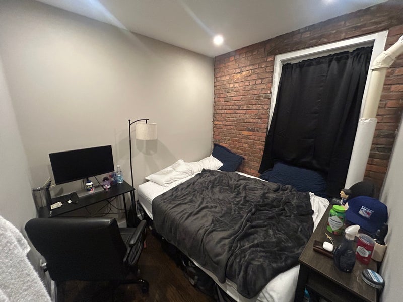 The bedroom is not huge but has ample space for full/queen bed, a desk and has a full closet and large window.