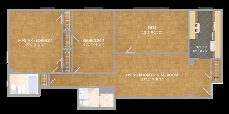 APARTMENT FEATURES: The apartments are HUGE- over 1200 sqft, recently renovated, and have great amenities, like laundry in the building, elevators, and a dishwasher and microwave already included. This room is the largest of the three, measuring 15 ft 6 in x 13 ft! It can comfortably fit a king bed plus additional furniture, and has 2 closets, 2 windows for tons of natural light, an AC unit already installed, and its own private bathroom!!