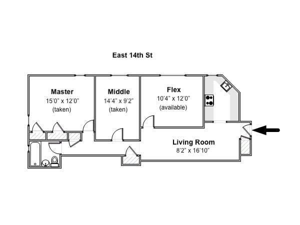 - Refer to attached floor plan: Master bedroom is taken, middle room is taken, flex room was mine but is now AVAILABLE and unfurnished however can include a large IKEA wardrobe and shelves.