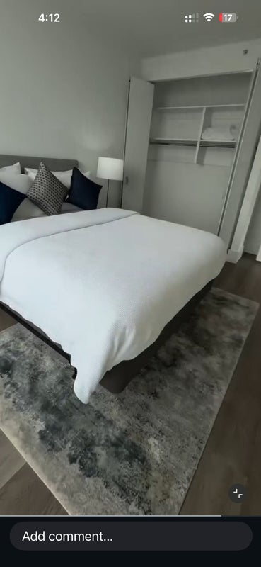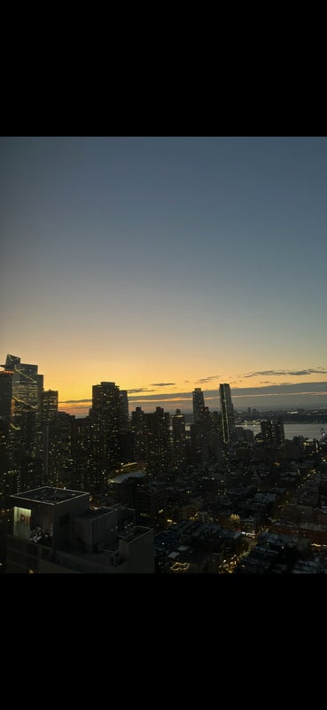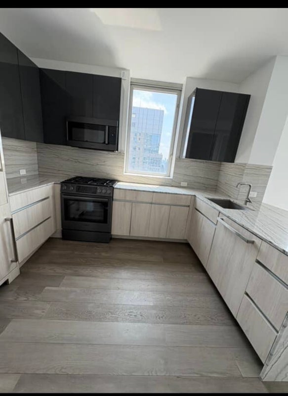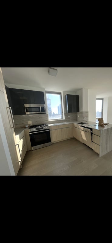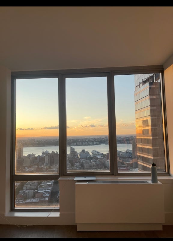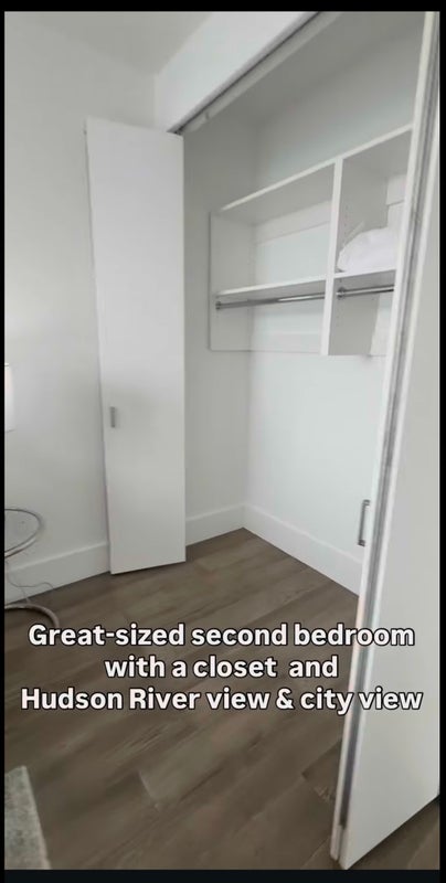 The apartment has in-unit laundry, a large modern kitchen, and beautiful Hudson River and city views from the windows. The bedroom has a large closet and gets great natural light.