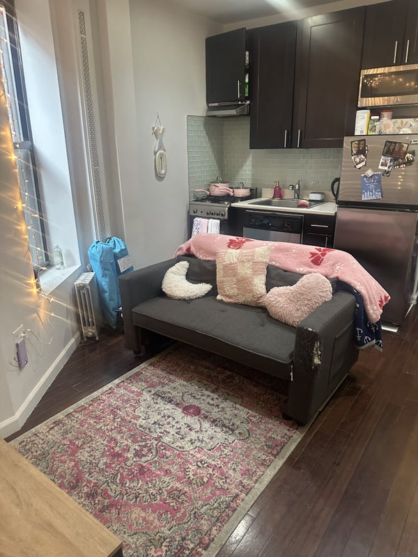 Hello! My roommate is moving out and I'm looking for someone to fill her room and resign the lease with me. The lease begins May 15 and we would sign for a year. It's a two bedroom apartment, so you would only have me to share the apartment with. Cats and small dogs are okay. I am 30 and a teacher, so ideally looking for a woman in their mid/late twenties to early/mid thirties. The apartment is adorable and is a quick walk to the F train and the D/B and 4/5/6 are also very close by (about 10 minute walk, 8 if you walk fast lol). The bedroom pictures listed are the ones that would be yours!