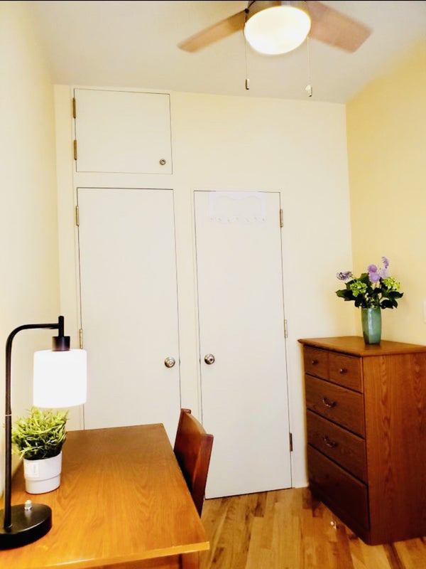 Sunny, bright, and airy. Available furnished. Two bedrooms, each with its own door, lock, and large floor-to-ceiling window. Eat-in kitchen. Spacious, windowed bath. Tons of closets. High ceilings with ceiling fans and air conditioning. Furnished with a twin-size bed, desk, and chair. Located in Manhattan’s Upper East Side, in the beautiful and sought-after landmark courtyard apartments. This pre-war building is a true piece of historic old New York, where spiral staircases connect each floor.