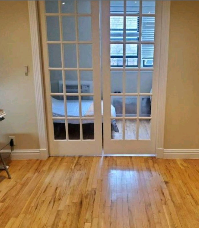 Accommodation available starting on May 1. This bedroom is behind a french door which allows sunlight into the living area.