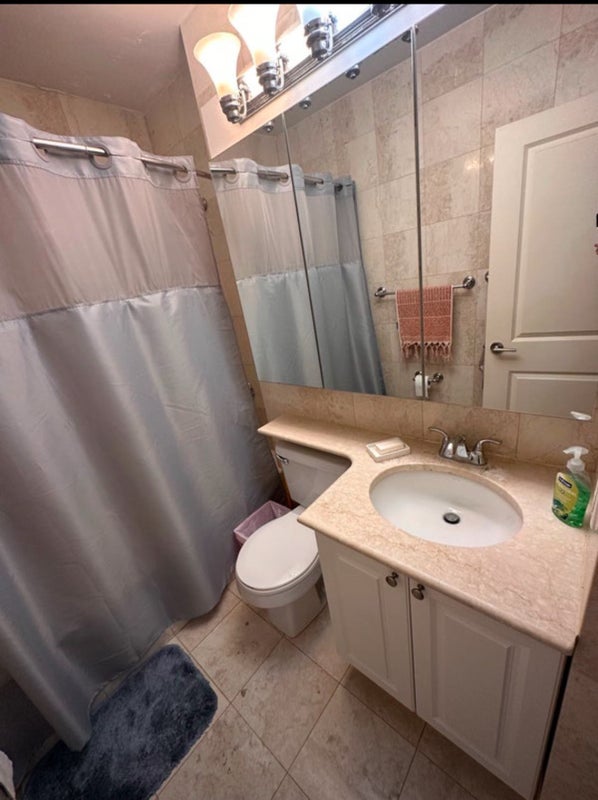 2 Professional women looking for 1 female roommate to occupy large flex bedroom. Bathroom shared with 1 other female. Bathtub / shower with 2 bathroom cabinets that have 3 shelves each, personal towel rack and additional storage under the sink.