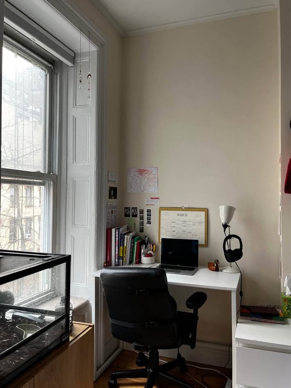 Beautiful studio on Upper East Side, huge windows, separate kitchen area, fully-tiled bathroom. Unfurnished except kitchen storage and bathroom shelves. Pet-friendly, laundry in-building, live-in super. Near two parks and river walkway.