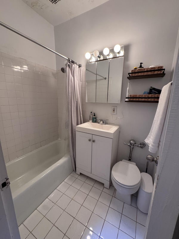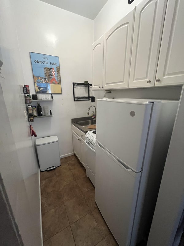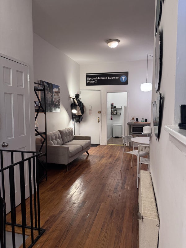 This apartment is on the first floor of a five floor walk up. The room is 8'x13', the picture has a queen sized bed. There are two closets, one inside the room and another right outside. There's a laundromat around the corner. Convenient for shopping, subway, and parks.