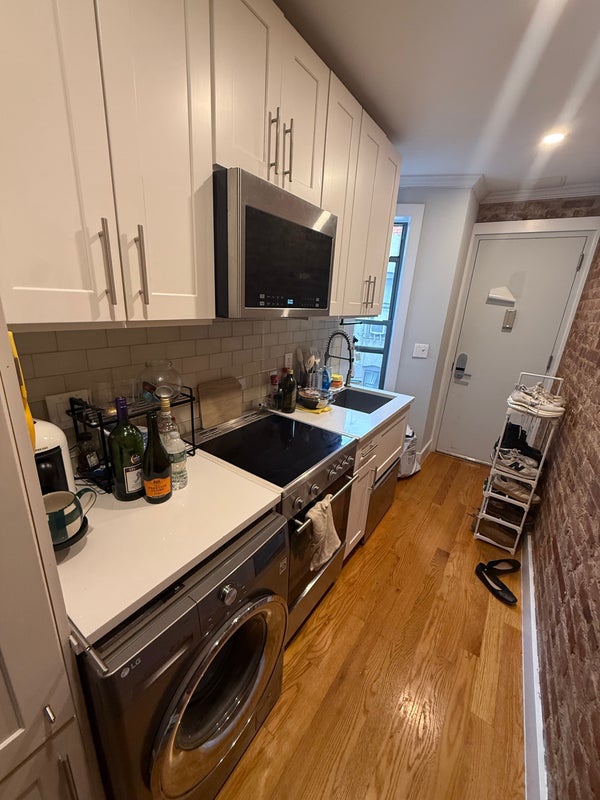 it’ll come furnished with a bed, and the rest of the apartment is fully furnished too. we also have in-unit washer/dryer (huge plus), a dishwasher, and a really modern kitchen.