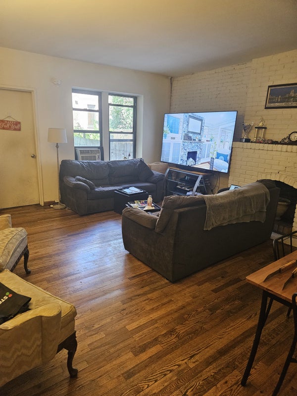 The apartment is huge with 3 Bedrooms and 2 full baths.(You'll share one of the bathrooms with the other female) There's also a living room, a galley kitchen, a spare room and a washer and dryer in the basement of the building.