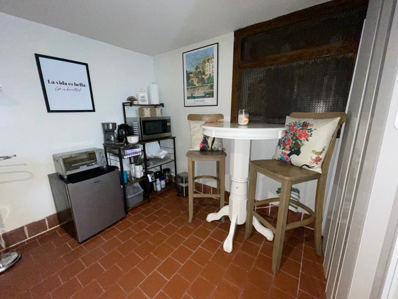 There is no full kitchen inside the studio, but you’ll have: