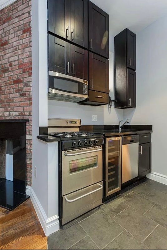 Washer/Dryer in unit Dishwasher and Microwave Stainless Steel appliances High ceilings Exposed brick Closet space Pets OK