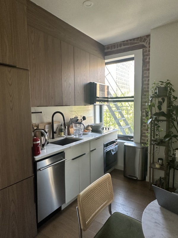 Unfurnished or furnished cosy, sunny bedroom with exposed brick walls available on April 1st! (maybe a few days sooner) Located in a 4bed - 2 bath apt in a beautiful renovated prewar walk-up building along the UWS. Room has a big closet and its own AC unit for heating/ventilation. Washer&Dryer in Unit. Perfect location to enjoy Central Park, it's only 2 blocks away, and several options for a fast commute with the red lines, 1-2-3 or the orange B or blue C line - all in 5min walking distance! Rent is 2000/month, all incl, except for electricity. Preferably 2-3months min. and after that monthly extendable. We are looking for a fun, clean, non-smoking, social but independent person who can enjoy living together with international roommates as well enjoy some me-time. We are all busy bees end twenties/beginning 30 something peeps living together; and we are all open for anyone who might want to become our 4th roommate. As long as we are having a drama-free, drug-free and chill & fun vibe living together. We are all having our own schedule and enjoy a run in the park, go to yoga or pilates after work or having drinks or enjoy dinner with the roommates together from time to time, so we are looking for someone who's also out and about! We all go to the office or Colombia University, so preferably having roommates who are going also min. 4 times a week out - pref. no homeworking. Apt is not too big, but fully furnished and very clean and cosy. Preferably no animals, even though we're big dog fans, just not easy in the apt. If you think you would be a good fit, please send a message with more info about you and we can see to meet-up in person!