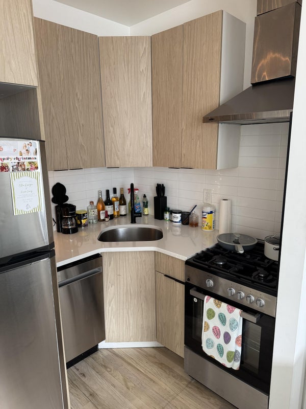 -Shared living space + kitchen. Updated appliances, dishwasher, clean, fresh-smelling kitchen