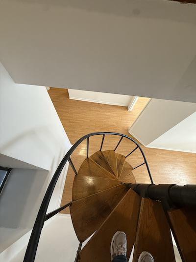 One bedroom upstairs, two downstairs, and there's also a small sitting room! Large outdoor space!