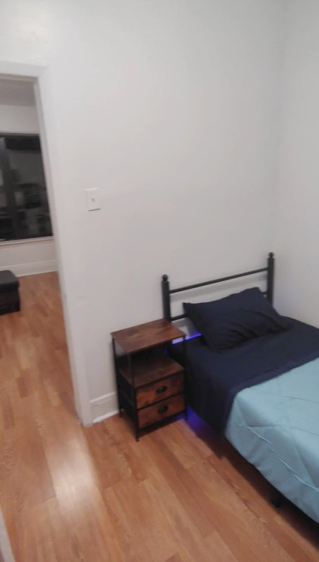 Small room available, twin bed, small night stand and closet. Access to living room, kitchen and shared bathroom. All utilities included, small electric fee during summer if electricity bill goes up more than expected. 2 cats and a 27yo female living in the apartment. It is a three bedroom apartment, one of the rooms can be use to store couple stuff. 4th floor in a walk up building. Safe Lively neighborhood, C and 1 train close by.