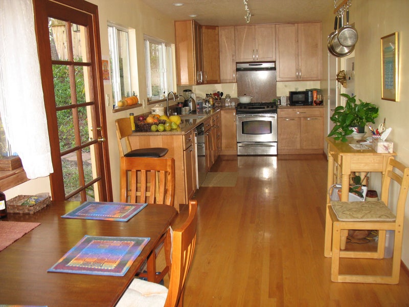 Quiet, beautiful remodeled home with new bathrooms and kitchen, oak floors, gas range, dishwasher, washer/dryer, wireless internet, and large, private backyard and garden. Rent includes utilities, paper and cleaning supplies, and a cleaning lady once a month.