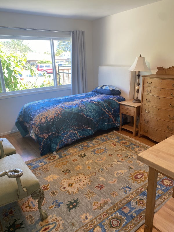 Sunny bedroom with garden view $1250 2nd Sunny more spacious bedroom $1450 with garden view and food prep area including refrigerator, microwave and sink plus access to main kitchen for oven, cooktop and sink. Both bedrooms are furnished. If both bedrooms are rented you will share bathroom with the other female adult tenant. Bathroom is light and bright with new vanity and tub/shower combo. Female housemate occupies 3rd bedroom/master suite. Central Air conditioning. Common areas include recently remodeled kitchen, living area, and laundry in garage. Small dedicated yard for bedroom tenants to share for barbequing, gardening or sunbathing, etc. Third housemate has her own yard and living area and will share main kitchen and laundry. Quiet neighborhood close to shops, public transportation and College of Marin Indian Valley campus with public pool and fitness facilities. Easy access to Hwy 101 in south Novato. No overnight guests allowed but daytime guests welcomed. Looking for independent, considerate and respectful housemates that enjoy privacy but also some social interaction in common areas and clutter free clean common areas for all to enjoy. Quiet hours after 10 pm. Current occupant has an 11 year old quiet dog that will not be allowed in housemate bedrooms. No cats but dogs will be considered if they get along with others, are supervised and quiet. Current housemate enjoys outdoor activities, hikes with dog everyday, enjoys swimming, pickleball, travel, cultural events, quiet evenings with a good book or good movie to unwind and relax. Utilities up to $100 for PGE, water and garbage.