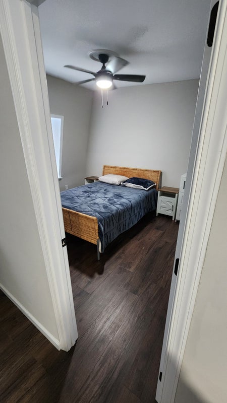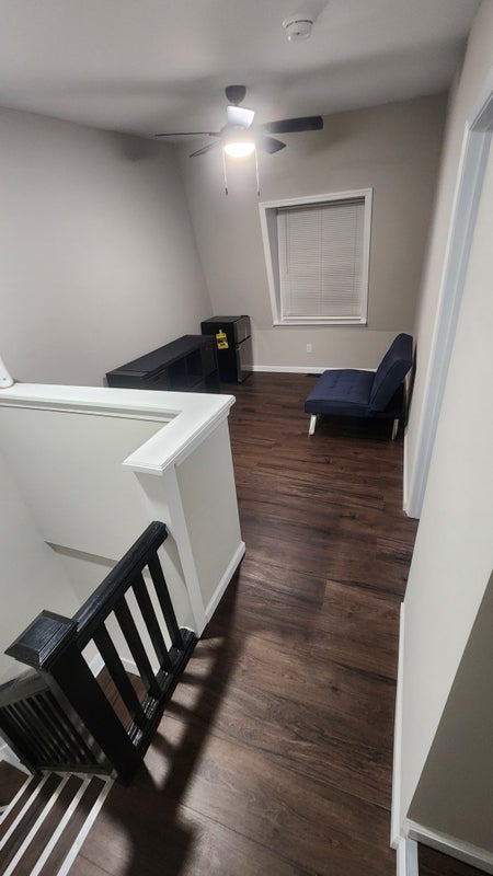 Hello, Renting a 3rd-level unit good for a couple or a single parent - includes a -Master Bedroom with a queen bed and 2 nightstands - a new full bathroom - a living room with a TV stand, a chair, and a small fridge (Include all the furniture in the pictures) -no private entrance, street parking, -laundry only one time a week -kitchen shared with other housemates -utilities are included - free internet - a Cat allowed - A small dog is allowed, but a $50 fee will be included