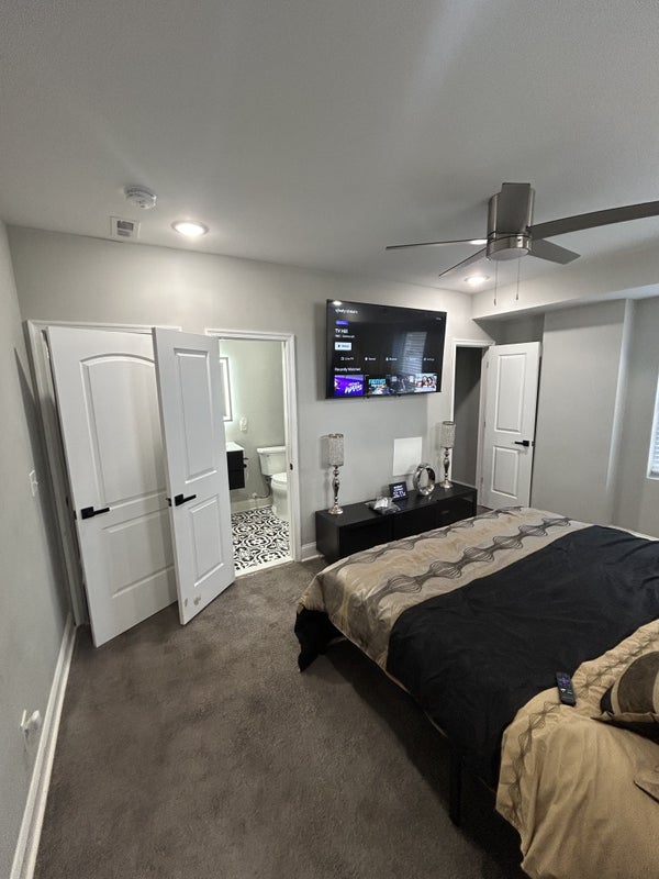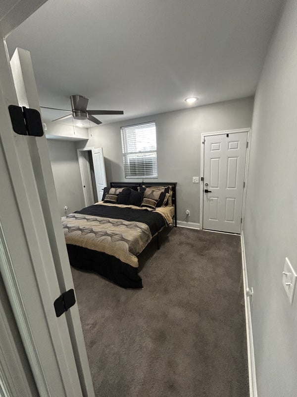 OWNER SUITE WITH BALCONY AND BATHROOM Private in room bathroom KING size bed 2 Walk in closets Open to small/medium size pets Non smokers inside of the house No drama Shared laundry on site Cable Smart tv included Quiet neighborhood & home Street parking Room come FURNISHED.