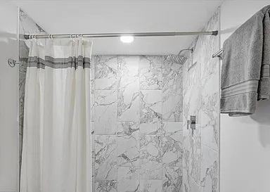 The fully renovated bathroom showcases clean lines, modern fixtures, and elegant finishes for a spalike feel. The spacious bedroom offers ample closet space and a cozy retreat at the end of the day.