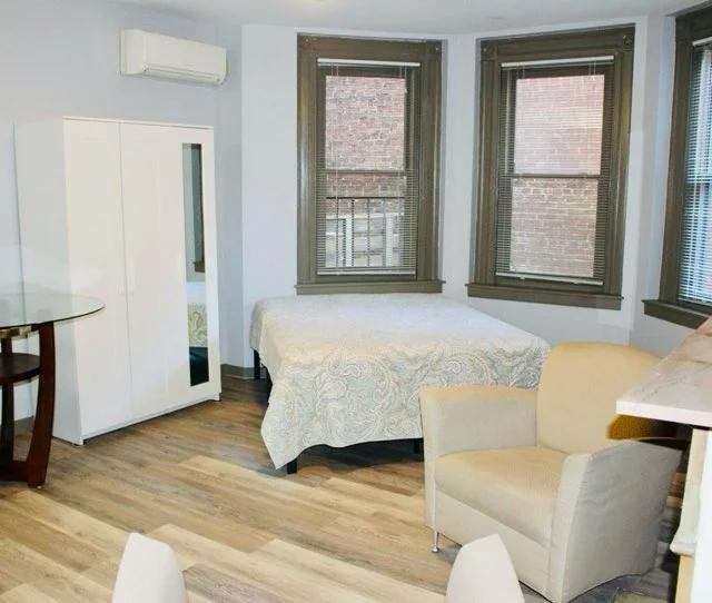 Updated studio apartment with large windows, stainless steel appliances and granite counters and laminate floors. Inunit washer and dryer with water covered by the landlord. Has a smoke and fire detection system and an intercom system. Bathroom storage and a walkin tiled shower. Live in a historic building in the Mount Vernon neighborhood of Baltimore City with a walkin score of ..