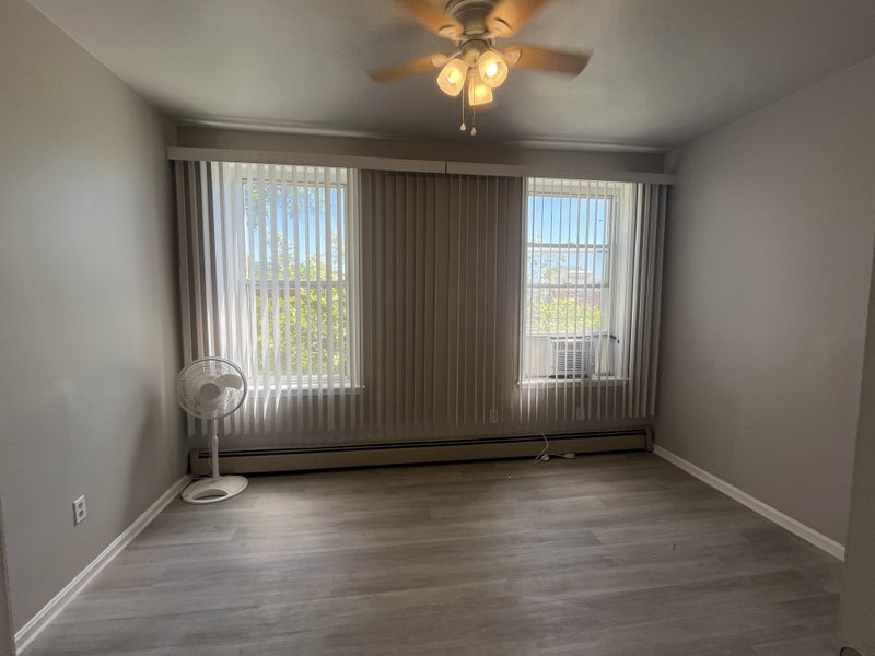 The large room is on the top level and has large windows, closet and AC