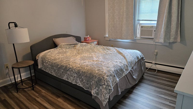 Private upstairs area consisting of a bedroom, an office/study, and a bathroom with a shower/tub combo. Renovated in 2023. furnished with queen-sized bed, full sized dresser, nightstands, and a small adjustable desk. Window A/C units in each room, independently controlled by tenant. living spaces on the main floor consisting of fully equipped kitchen, fully furnished living room, and fully furnished dining room. Laminate flooring with area rugs throughout the house for ease of cleaning. Spacious driveway can comfortably fit 4 cars, spacious 2 car garage with additional storage space available. Huge fenced backyard with beautiful lawn, deck, grill, tree swing, firepit and several yard games available. The first tenant will be living alone until another tenant that can coinhabit with the first tenant is found.