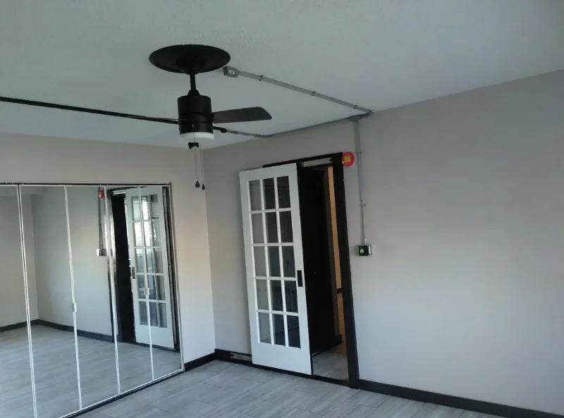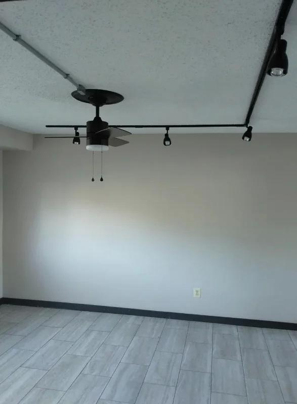 This unit features an industrial look with conduit and track lighting and metal switch boxes.