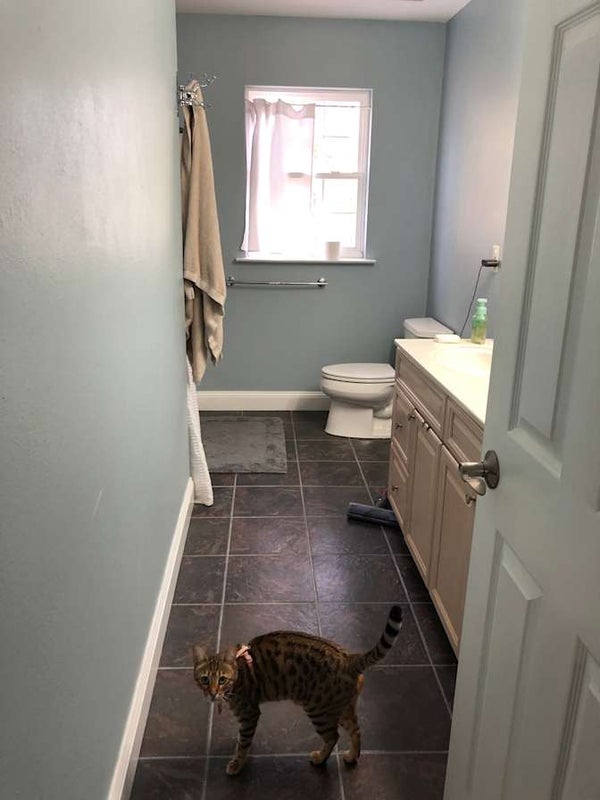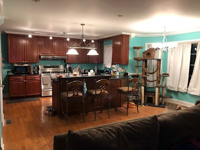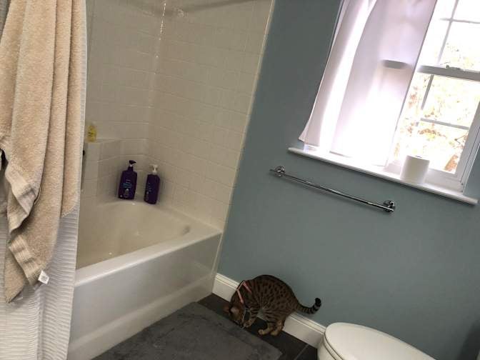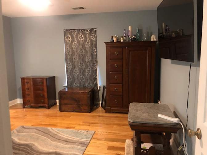 Port Republic, MD, Calvert County, near Prince Frederick and NAS Pax River. Room w shared bathroom available in 3200 sq ft, 5 br/3.5 bath house on over 1 acre. Room has full size bed, chaise lounge, small dresser, large gentleman’s chest, chest, table, 65” smart TV w Roku. Closet is large enough for full size bed w closet organizer (bed is currently in the closet), which turns bedroom area into a private living room w a couch/chaise lounge. Internet & water included. Power & gas will be proportional to use and number of residents. Plenty of parking. Laundry, 2nd fridge-microwave-coffee pot upstairs. Additional rent for couple. Female cat considered.