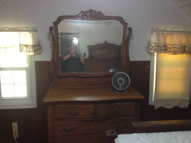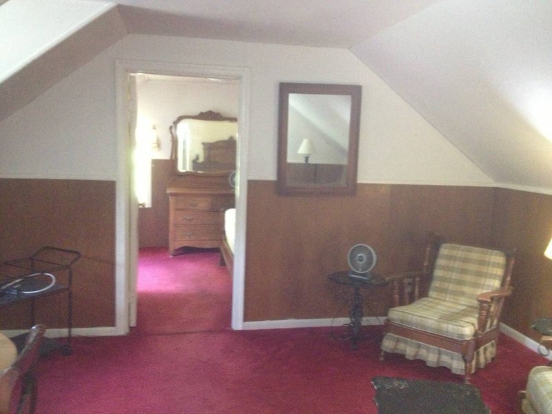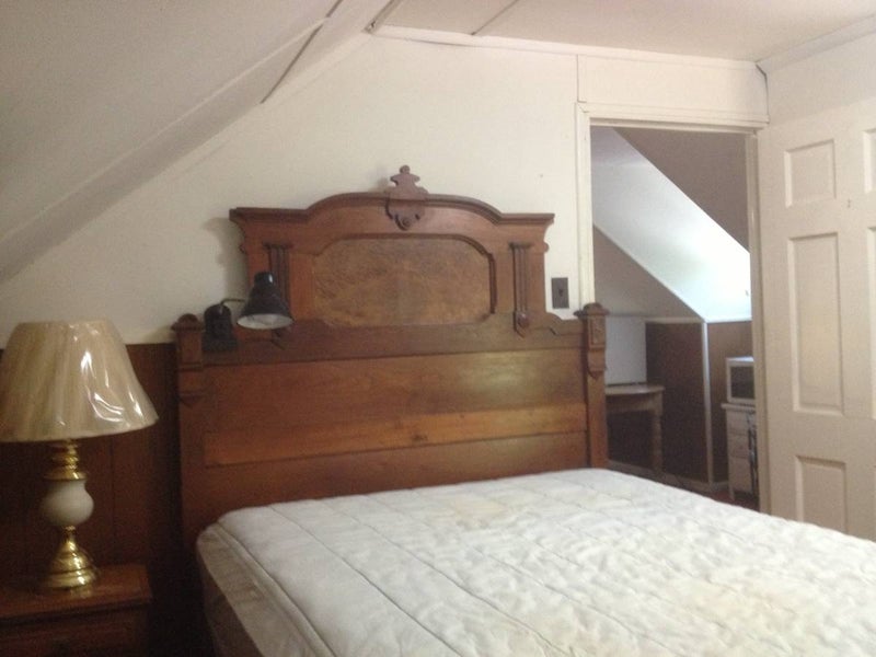 Large Bedroom with 6 windows on 3 walls in 1857 home. Window glass is old and has waves in the panes. Fireplace in room is not to be used (200 yrs old) walk in closet and private bath inside room. Large Walnut queen Bed with new mattress in room.