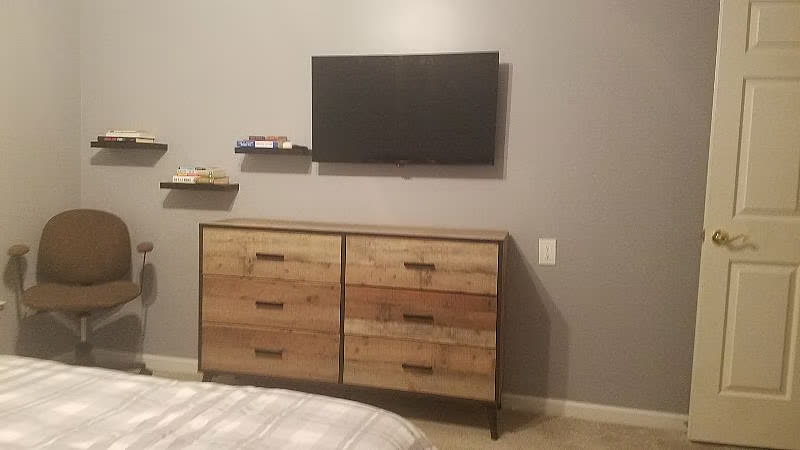 The available room is fully furnished and includes a queen-size bed, private bathroom, and a top-of-the-line memory foam mattress (about three years old) with brand-new sheets and a comforter. The room also features a wall-mounted 42-inch TV with Hulu Plus and other streaming options, along with high-speed T-Mobile internet. The rooms are on opposite ends of the condo for extra privacy.