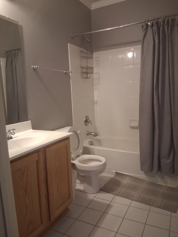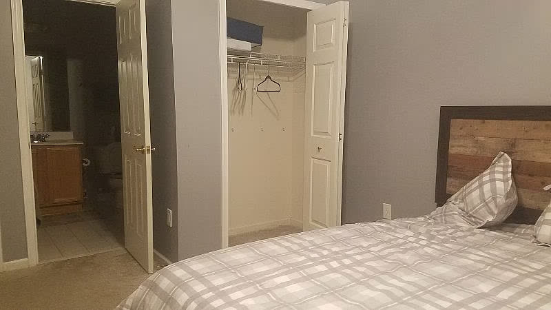 The available room is fully furnished and includes a queen-size bed, private bathroom, and a top-of-the-line memory foam mattress (about three years old) with brand-new sheets and a comforter. The room also features a wall-mounted 42-inch TV with Hulu Plus and other streaming options, along with high-speed T-Mobile internet. The rooms are on opposite ends of the condo for extra privacy.