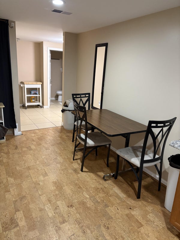 Clean and specious room available in the walk-out basement of single family home. Future include: Private entrance: separate from main house. • Shared Bathroom: Shared with one other person in the basement. • Furnished Room & Amenities: Unfurnished bedroom, pantry, dining area, stove, microwave, refrigerator, and independent laundry facilities. Parking in front of house. • Free Wi-Fi & Utilities Included in the rent. • Cleaning Service: Complementary Professional cleaning for shared spaces. • House Rules: No smoking, drugs, weed, pets, loud music or drama allowed on the premises and preferred male. • Requirements: 1 year lease and1-month security deposit required, proof steady income, background check available if necessary.