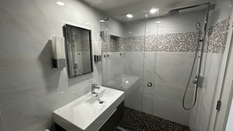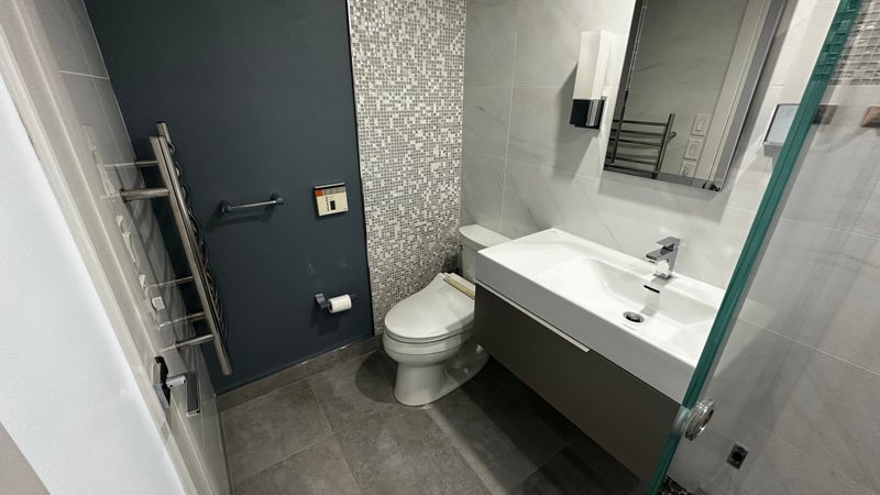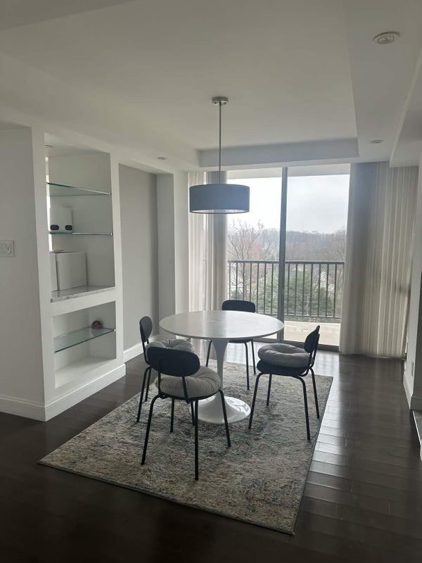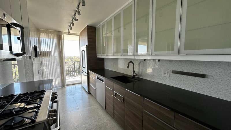 The apartment features floor-to-ceiling windows in every room, bringing in great natural light and views. Shared spaces include an open living room, dining area, and additional recreational space, so there’s plenty of room to relax or work from home. The apartment also has a modern galley kitchen with ample storage and prep space.