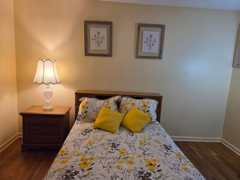 This house has three bedrooms a full kitchen a finished furnished basement with washing machine and Dryer available. A backyard deck with grill and flowered garden in spring and ☀️ summer front street free parking furnished live room I'm seeking a clean honest and friendly person to share house with.
