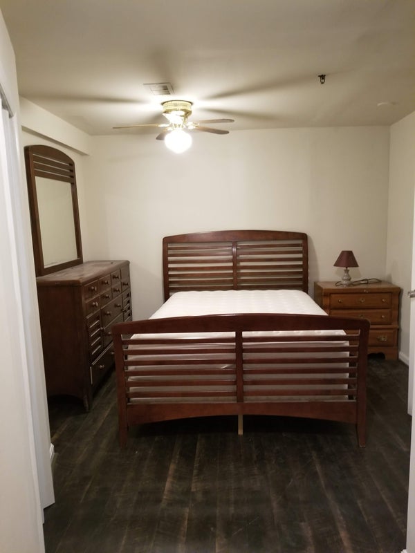 The bedroom is thoughtfully furnished with a queen-size bed and mattress, a stylish dresser with a mirror, a spacious chest, and a cozy night lamp stand. For your entertainment, a 55-inch VIZIO TV and a ROKU multimedia device are also provided. This space is perfect for a single person looking for a peaceful and comfortable home. Don’t miss out on this fantastic opportunity—make it yours today!