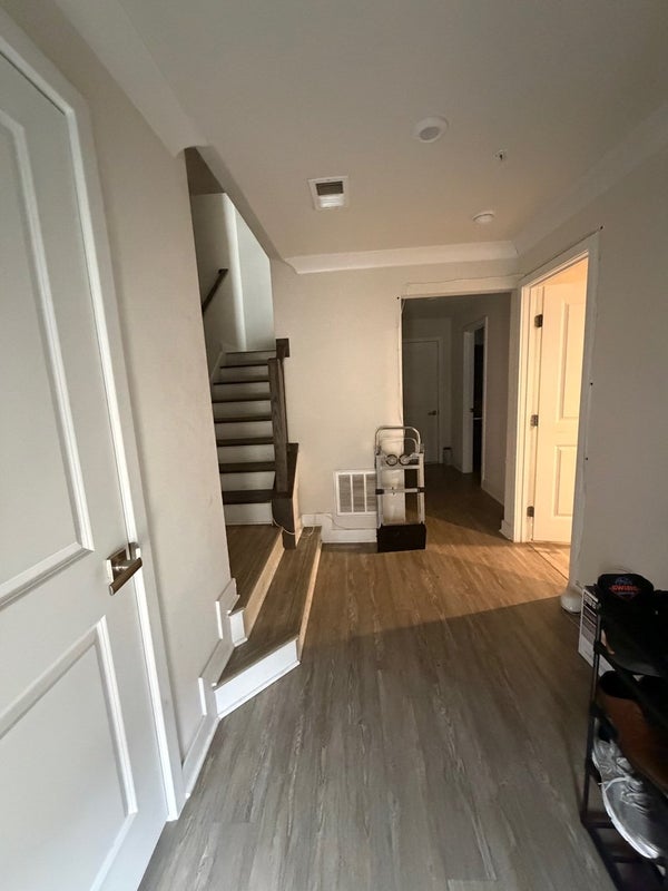 story townhouse in Suitland MD — the st floor bedroom and bathroom is what's being rented. It has an attached bathroom and closet exclusively yours, so NO shared bathrooms! Free street parking. Shared areas include a kitchen with dishwasher and gas range, a community massage chair, chill living room, and a bar area (replace what you drink within a day or so). Big requirement: clean up after yourself. Great natural lighting with blackout roller blinds. Inhouse washer and dryer!