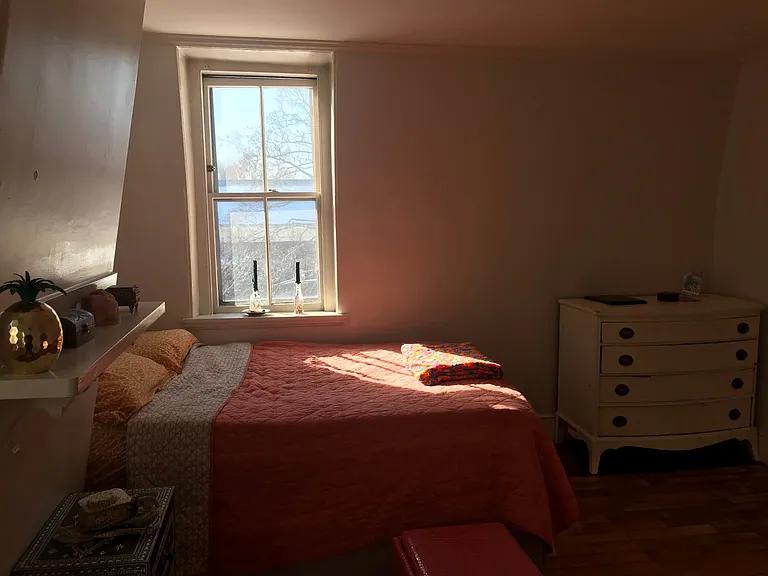 Beautiful little sanctuary perched at the top of a classic West End building. Spacious living room and bedroom. Cute little kitchen. Updated bathroom. Historic details, original wood floors, mantels and uniquely arched windows with deep sills. Top floor lends warm light.