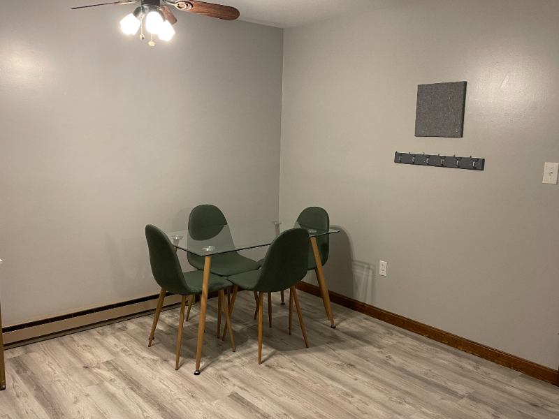 Convenient location and the rent includes domestic hot water, sewer, garbage, lawn care, plowing. Secure building, large parking area and building is away from the road. Tenant pays for internet, cable, electric heat.