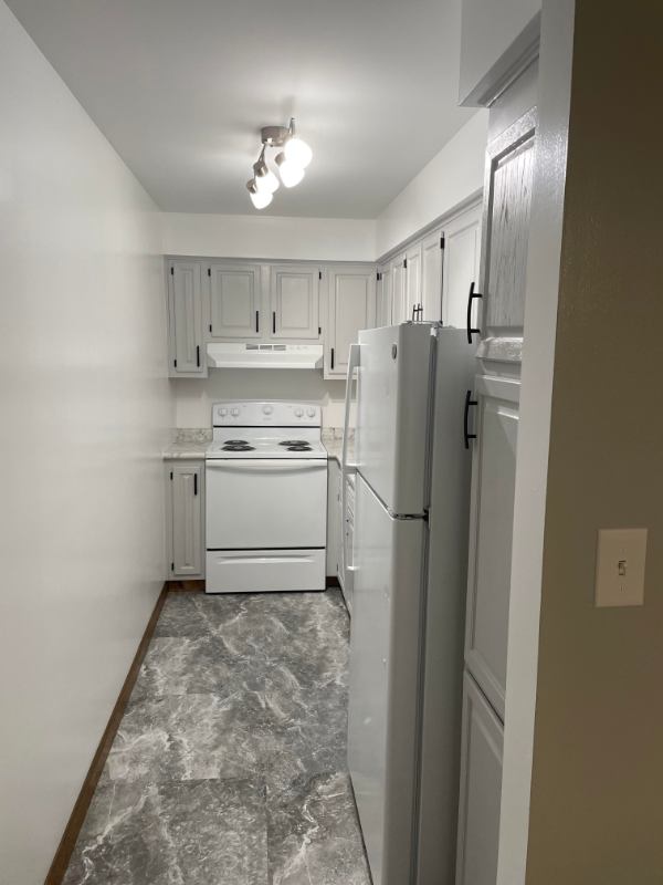 Convenient location and the rent includes domestic hot water, sewer, garbage, lawn care, plowing. Secure building, large parking area and building is away from the road. Tenant pays for internet, cable, electric heat.