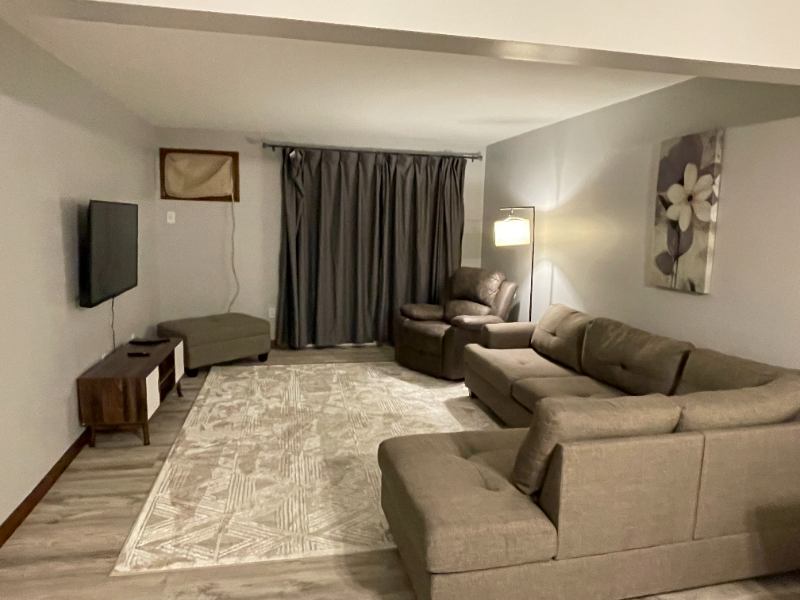 Furnishings include: fully appointed kitchen, refrigerator, oven, dishwasher, microwave, coffee maker, toaster, large sectional, ottoman, kitchen table, chairs, work desk, chair, smart TV, king size bed, bureau, patio table, chairs and more.