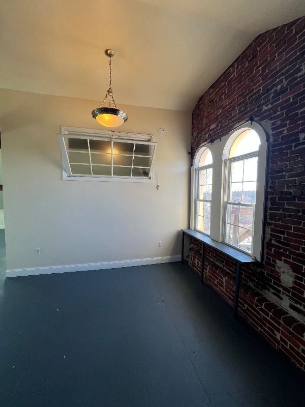 Newly painted , one bedroom, one bath rd floor apartment in historic school house. Very large, open concept kitchenliving room. High ceilings, exposed beams, brick walls, light filled and freshly painted. Gas heating. Tenant pays heat and cable. Landlord covers electrical, sewer, water, trash, snow removal, and common maintenance. Onsite coin operated laundry and onsite parking. Close walk to down town main street with grocery store, restaurants, and shops...walk to parks and waterfront.
