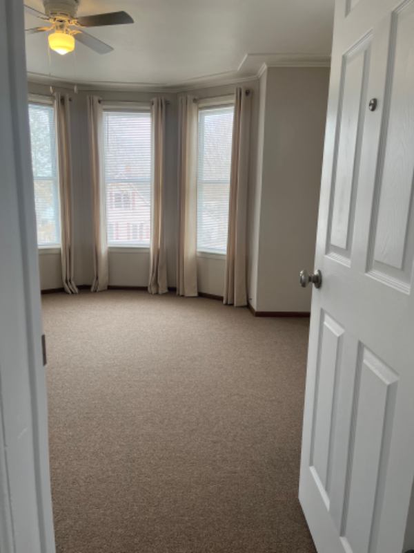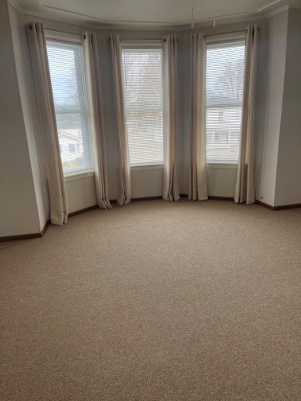 Unit of , features: Living room, kitchen, dining area, bedroom , bath, closets. Stove, refrigerator, small window air conditioner, curtains and blinds provided. Lots of natural light. New carpeting, fresh paint and other updates. Comfortable radiant heat. Softenedconditioned water. Tenant pays own electric and cable or WIFI service. One offstreet parking spot. No smoking No pets Onsite management