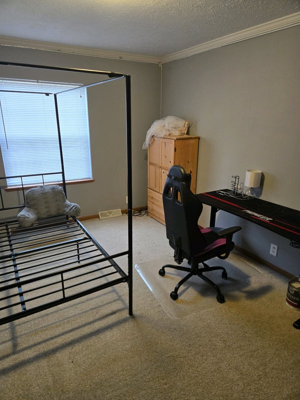 One bedroom in three bedroom house for rent. Walk in closet, semi private bathroom (not attached but private use). Access to common areas, including kitchen and laundry. Quiet rural area, minutes from Lansing, East Lansing, St John's.
