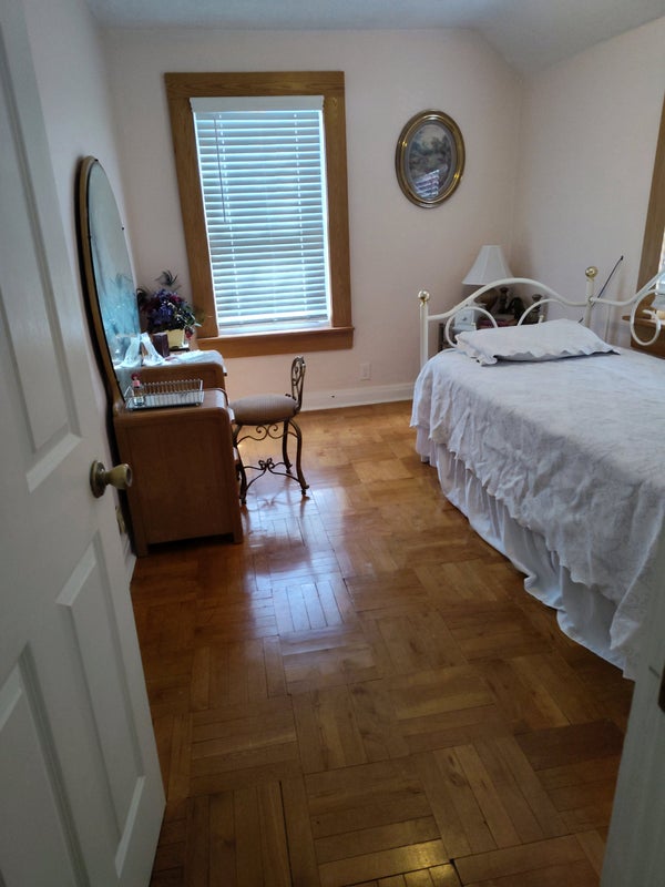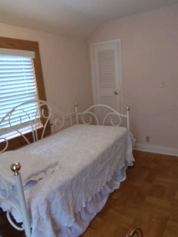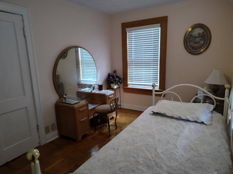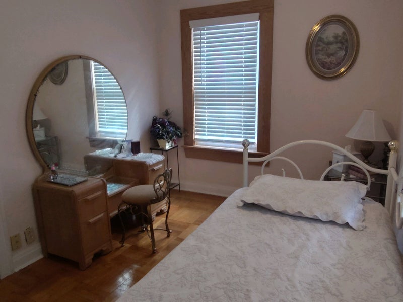 2 closets. Hardwood floors. Twin bed, nightstand, vanity. Willing to move these items out if necessary. Central air. Safe neighborhood with a beautiful park nearby. Seeking a time-limited situation but two month minimum.