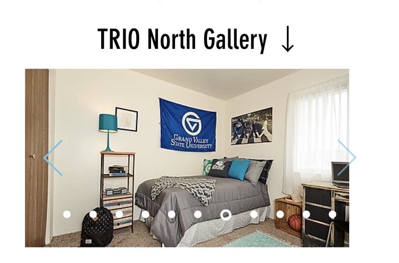 This is for one bedroom at TRIO north apartments, located right by GVSU. *MOVE IN DATE AUGUST 2020* There are 4 bedrooms total, 2 bathrooms. Requirements: - smoke/pet free - no parties to be thrown at the apartment - must be females - must be cleanly/organized - I have one cat, so no other animals please - SERIOUS INQUIRIES ONLY! - winter special going on right now: $100 off rent, $40 off parking pass - 3 bedrooms still available