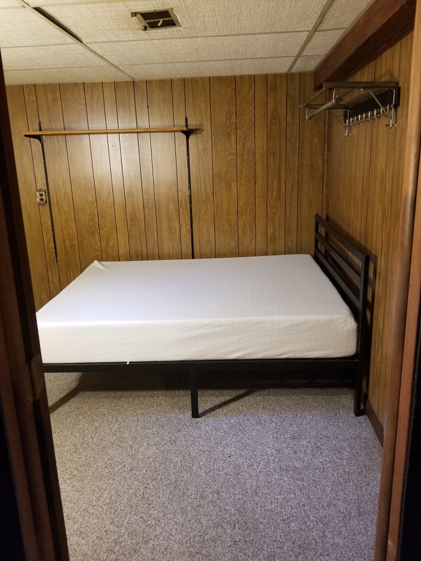 Small basement bedroom with a full bath, a separate room with a fridge and couch and tv stand, and another large open area for exercise if you'd like. Fenced in backyard for pets, and there is already a small dog that lives upstairs. Utilities and internet included in price. Shared kitchen and living room on first floor.
