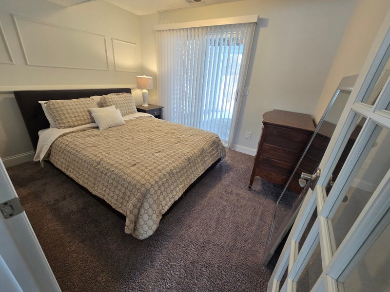 The unit is part of a newly renovated split-level home and has not been occupied since the updates. It includes : - 2 rooms (a bedroom with a Queen-size bed and a living room with a sofa bed and a walk-in closet) - a private entrance, - a private patio, - a garage spot, - a private bathroom is located on the next level. The space also features a private fridge and microwave, with shared access to the kitchen floor and laundry. Residents are also welcome to use the property's fire pit and grill.